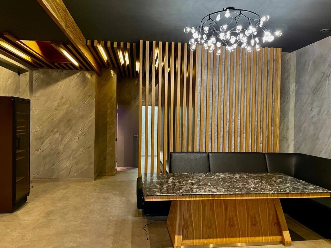 огромный стол для большой компании. Очень красивый интерьер, и приятная атмосфера. На любую нашу просьбу ( буть то лёд, напитки или заказ шашлыков ) реагировали мгновенно!!! Замечательный персонал и дружелюбная атмосфера !!! Шикарный отдых за небольшие деньги !